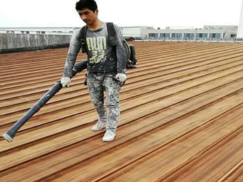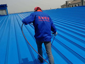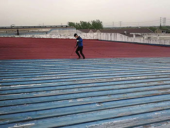 3、使用佳景美鐵紅防銹底漆在彩鋼屋面噴涂施工,用量0.15~0.2kg/m2;